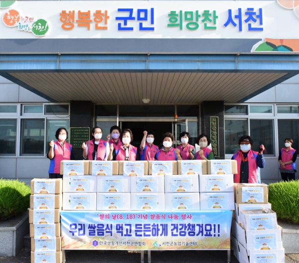 또한, 한국생활개선서천군연합회는 지난 3월부터 지역의 어려운 홀몸 어르신들 40명과 후원결연을 맺고 매월 1회 사랑의 반찬나눔 봉사활동을 펼치고 있으며 지역경제 활성화를 위해 착한소비 캠페인 운동을 펼치는 등 어려운 이웃을 돌보고 다함께 잘 사는 서천을 만들기 위해 앞장서고 있다.
