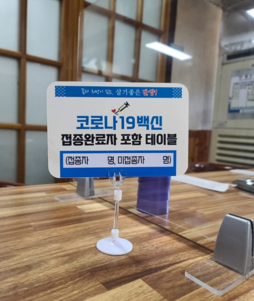 이에 따라 각 업소에서는 쿠브 앱이나 백신접종 완료증명서 등으로 2차 접종 후 14일이 경과됐는지 여부 등을 확인한 뒤 배부된 안내판을 테이블에 세워두면 된다.