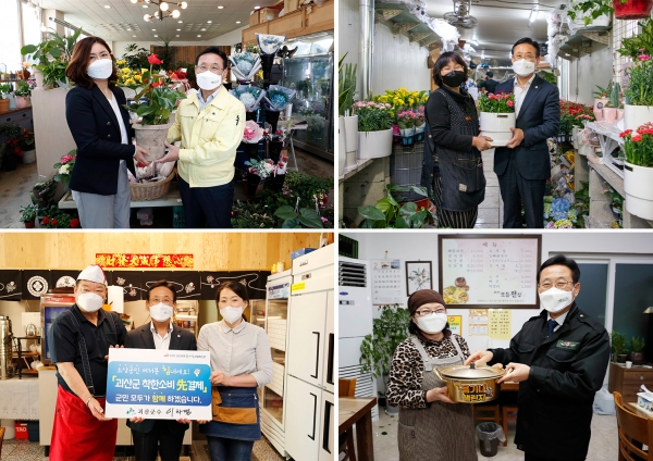 소상공인을 위한 시책으로 용기내챌린지 공직자 런치투어 괴산사랑 착한先결제운동 퇴근길 음식포장 SNS 이벤트를 실시했고 농가를 위한 시책으로 꽃같은 花요일 착한선물 나눔 캠페인을 진행했다.