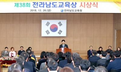 [충청뉴스큐] 제38회 전라남도교육상 시상식이 28일 오후 전라남도교육청 대회의실에서 열렸다. 전라남도교육상은 "전라남도교육감 표창 등에 관한 조례"에 따라 도민의 사표가 되고 전라남도 교육 발전에 기여한 공적이 현저한 사람에게 주는 상으로 매년 5명 이내에서 수여하고 있다.