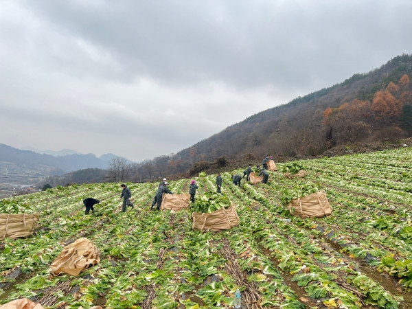 이날 일손 돕기에는 재무과 직원 16명이 참여해 배추밭 1,000여 평에서 배추 수확 작업을 하며 인력난을 겪고 있는 농가에 큰 힘을 보탰다.