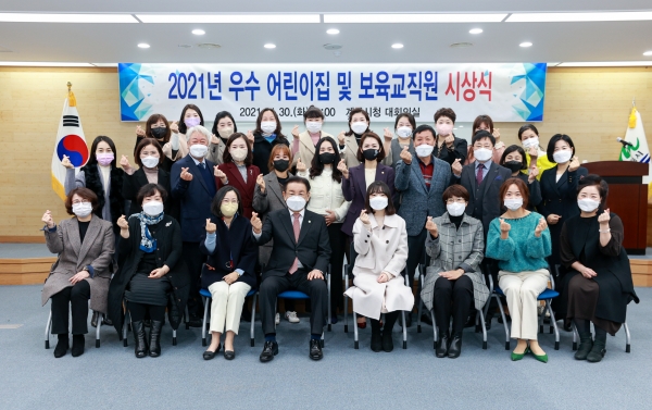 [충청뉴스큐] 계룡시는 지난 11월 30일 시청 대회의실에서 2021년 계룡시 우수 어린이집 및 보육교직원 시상식을 열었다고 전했다.