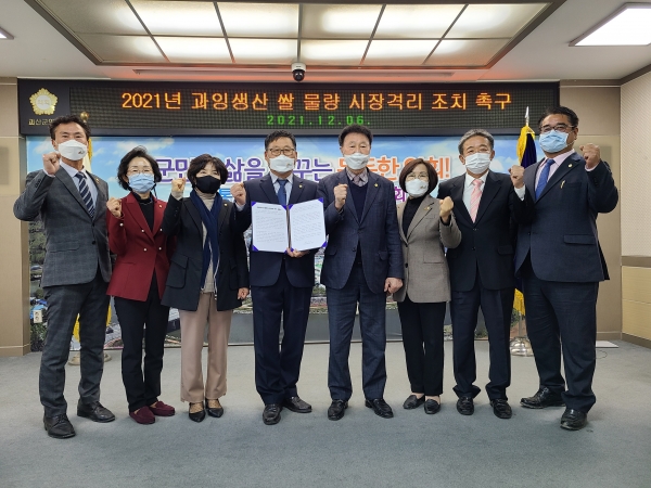 괴산군의회 의원 일동은 “기후변화, 코로나19, 나날이 상승하는 생산비에도 힘겹게 일궈낸 풍년을 기뻐할 수 없는 것이 농민의 현실”이라며 “쌀값 안정을 위한 공급과잉 쌀 시장격리 조치를 즉각 시행할 것”을 재차 촉구했다.