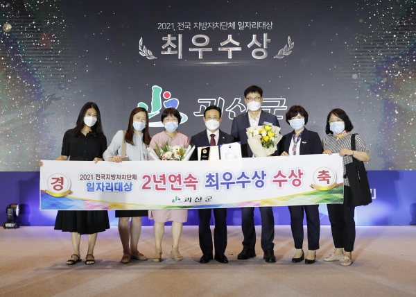 군은 올해 7월 고용노동부 주관 ‘2021년 전국 지방자치단체 일자리대상’ 지역일자리 목표 공시제 분야에서 2년 연속 ‘최우수상’을 수상하는 쾌거를 이루었다.