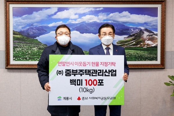 [충청뉴스큐] 계룡시는 지난 23일 ㈜중부주택관리산업에서 복지사각지대 취약계층을 위한 백미 1000kg을 기탁해 왔다고 밝혔다.