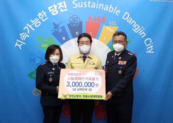 당진시에 26개의 지대를 총괄하고 있는 당진소방서 의용소방대 연합회는 작년에 이어 올해에도 300만원을 기부하며 주변 이웃을 돌보는 나눔 문화에 앞장서고 있다.
