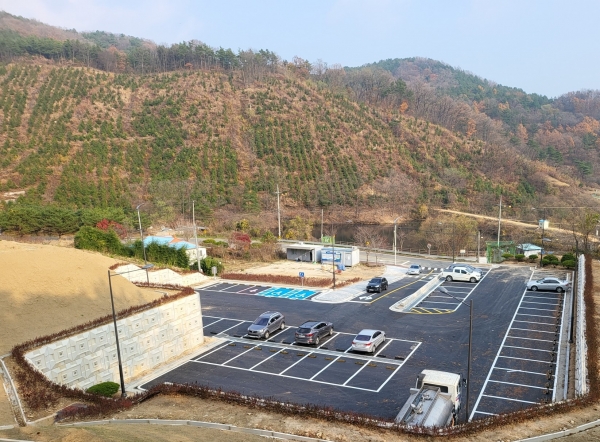 이번에 준공된 향적산 공영주차장은 2022년 향적산 치유의 숲 시범운영에 맞춰 올해 국비 4억원을 확보해 총 10억원의 사업비를 투입해 대지면적 5,609㎡, 주차면수 59면으로 조성됐다.