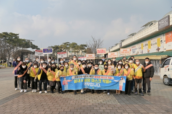 김정섭 시장과 보건소 직원 등 20여명은 산성시장과 종합버스터미널 일원에서 시민들을 대상으로 코로나19 예방접종 독려와 함께 연말연시 모임 및 타 지역 이동 자제 등을 당부했다.