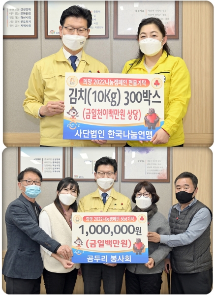 먼저 장애인, 독거노인 등의 취약계층을 대상으로 다양한 봉사활동을 하는 단체인 곰두리봉사회는 회원들이 십시일반 모은 성금 100만원을 지난 4일 공주시에 기탁했다.