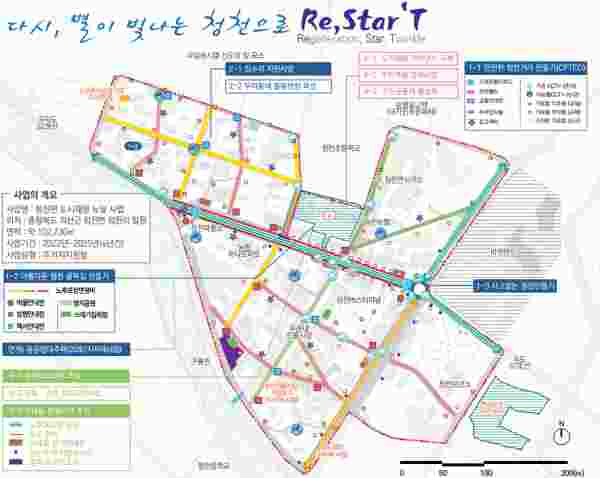 주요사업으로는 정주환경개선을 위해 안전한 청천거리 만들기 아름다운 청천 골목길 만들기 사고없는 청천 만들기 노후주택 정비사업을 추진한다.