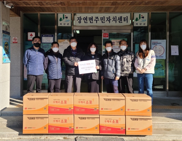 정미훈 장연면장은 “명품 귀농귀촌지 괴산군 장연면에 귀촌해서 지역의 어려운 이웃을 위해 나눔을 실천하는 따뜻한 마음에 감사드린다”며 “식료품 꾸러미는 도움이 필요한 어려운 주민에게 전달해 행복한 설 명절을 보낼 수 있도록 소중히 전달하겠다”고 전했다.