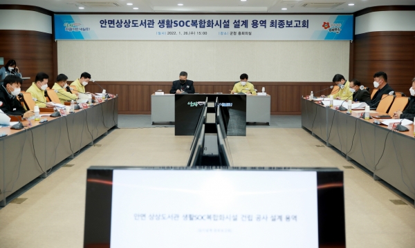 군은 지난 26일 군청 중회의실에서 가세로 군수를 비롯한 군 관계자와 군의원, 공공건축가, 지역대표, 용역사 관계자 등이 참석한 가운데 ‘안면상상도서관 생활SOC 복합화 사업 건립을 위한 건축설계 최종보고회’를 개최했다고 밝혔다.