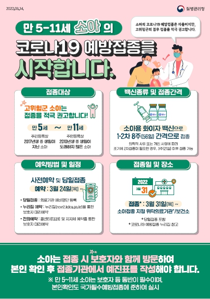 보건소 관계자는 “최근 오미크론 변이의 유행에도 코로나19 백신 접종은 본인과 가족의 건강을 지키기 위한 가장 효과적이고 중요한 수단이다”며“소아·청소년의 중증예방을 위해 예방접종에 적극 참여할 것”을 당부했다.