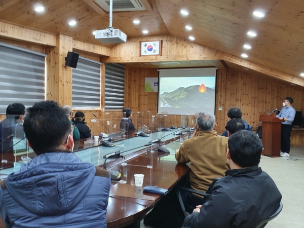 용봉산 휴양림 내에서의 화재 발생 시 대피요령, 산불추세 등을 그동안 실전에서 겪은 다양한 사례를 바탕으로 교육을 진행했다.