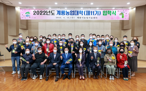 [충청뉴스큐] 계룡시는 지난 13일 농업기술센터 대강당에서 입학생 41명이 참석한 가운데 ‘제11기 계룡농업대학 입학식’을 개최했다.
