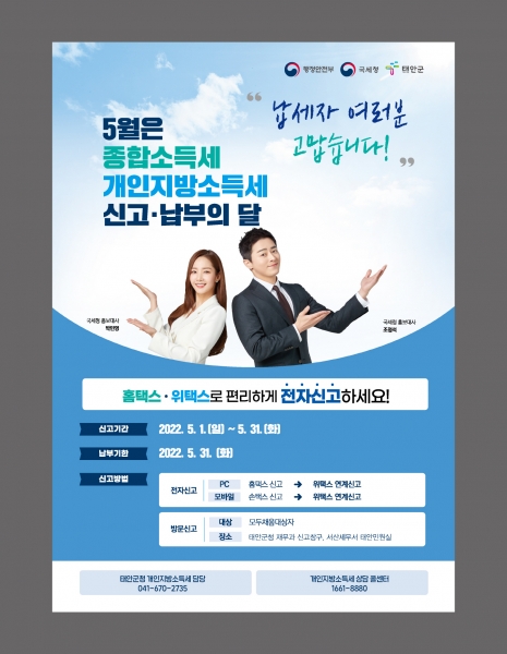 [충청뉴스큐] 태안군이 5월 한 달간 2021년 귀속 개인지방소득세 확정신고 및 납부를 받는다고 밝혔다.