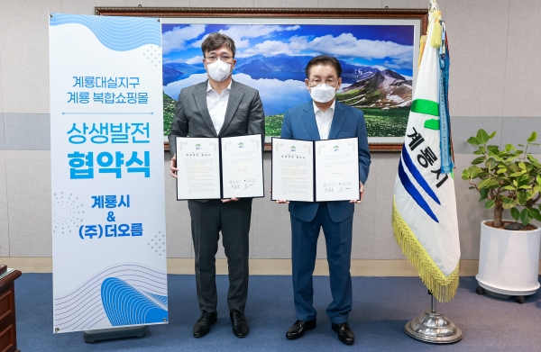 시에 따르면 ㈜더오름의 타 대형유통업체를 반드시 유치하겠다는 의지와 계룡 복합쇼핑몰의 성공적인 사업추진과 지역경제 활성화 및 대실지구 정상화를 위한 상생발전을 위해 협약을 추진하게 됐다고 밝혔다.