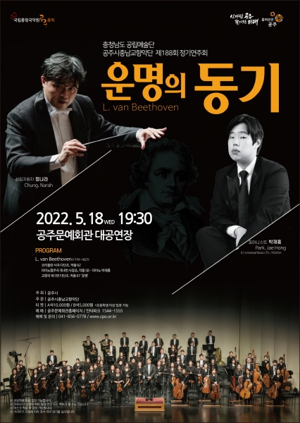 [충청뉴스큐] 충청남도 공립예술단인 공주시충남교향악단이 가정의 달 5월을 맞아 제188회 정기연주회 ‘운명의 동기’를 오는 18일 오후 7시 30분 공주문예회관 대공연장에서 개최한다.