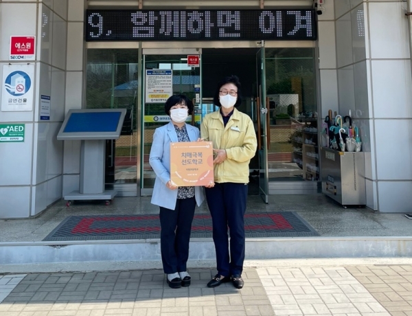 군은 지난 2019년 치매안심마을로 지정된 이원면 포지1리 내에 위치한 이원초등학교를 치매극복 선도학교로 지정해 지난 16일 현판 전달식을 가졌다고 밝혔다.
