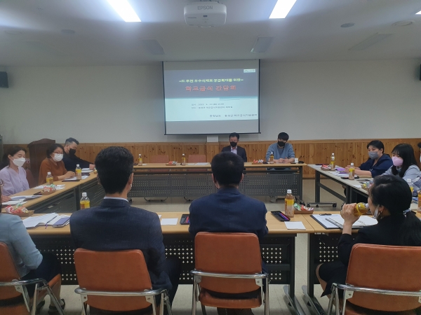 [충청뉴스큐] 홍성군은 지난 17일 홍성군 학교급식지원센터에서 학교급식에 지역산 식재료 공급 및 사용 확대를 위한 간담회를 실시했다.