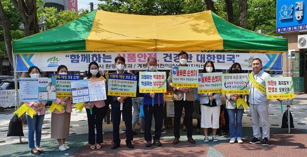 [충청뉴스큐] 계룡시는 제21회 식품안전의 날을 맞아 지난 17일 엄사면 일원에서 식중독 예방, 손씻는 방법, 짠맛 미각테스트 등 식품위생수준 향상을 위한 홍보 캠페인을 가졌다고 밝혔다.
