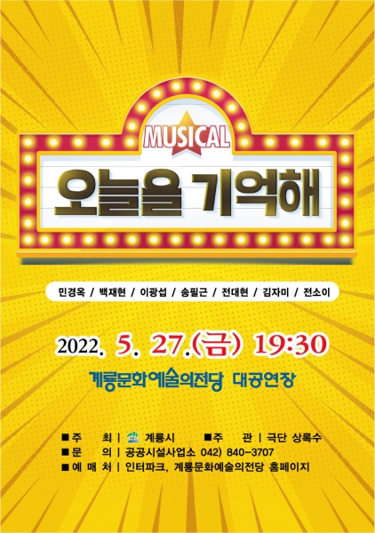 [충청뉴스큐] 계룡시가 오는 27일 오후 7시 30분 계룡문화예술의전당 대공연장에서 뮤지컬 ‘오늘을 기억해’를 공연한다고 밝혔다.