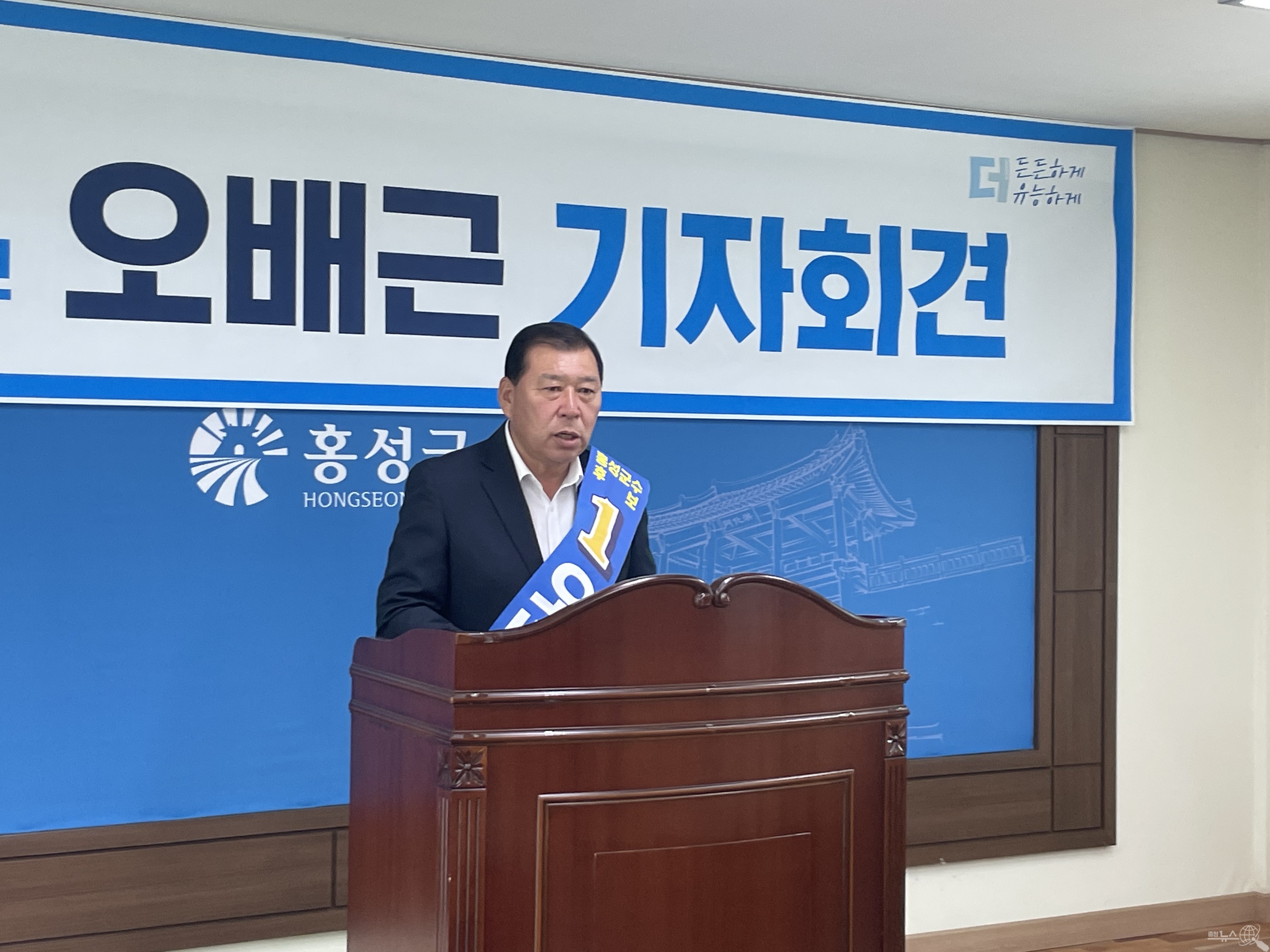 민주당 오배근 홍성군수가 "투표가 여러분의 삶을 바꾼다"라며 지지를 호소했다.