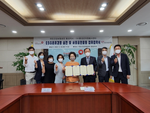 [충청뉴스큐] 홍성군자원봉사센터와 국민건강보험공단 홍성지사는 지난 24일 ESG경영 실천과 지역 자원봉사 활성화를 위한 업무 협약을 체결했다.