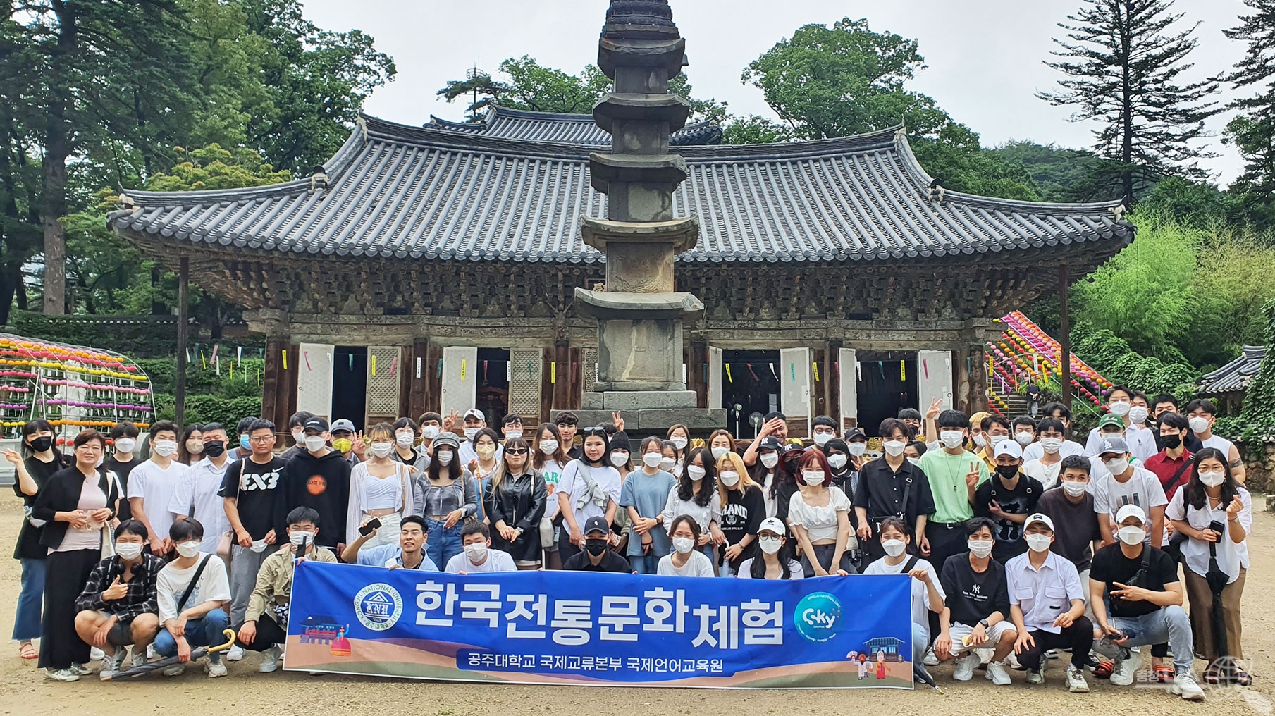 국립공주대학교(총장 원성수) 국제언어교육원(원장 임은정)은 30일 중국, 베트남, 우즈베키스탄, 몽골 등 5개국 75여 명의 연수생들이 공주 마곡사와 유구색동수국정원을 방문하여 한국 산사의 정취와 만개한 수국을 보며 여름의 아름다운 한국을 느끼며, 여름학기 문화체험을 실시했다. 특히, 몽골에서 온 한국어연수생 앙그르마는 “몽골의 불교와 한국의 불교의 비슷한 점과 다른 점이 있어 흥미롭다고 하였고, 친구들과 아름다운 추억을 만들어 기쁘다”고 말했다.
