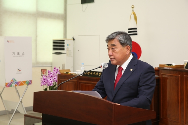 오후에 열린 개원식은 김기웅 군수를 비롯한 관계공무원, 전직의원, 기관단체장, 언론관계자 등이 참석한 가운데 의원선서 윤리강령 낭독 및 개원사와 축사 순으로 진행됐다.