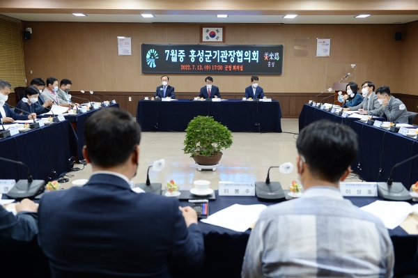 [충청뉴스큐] 지난 13일 오후 5시 30분 홍성군이 이용록 홍성군수 주재로 관내 기관장 23명이 참석한 가운데 기관장협의회를 개최했다.