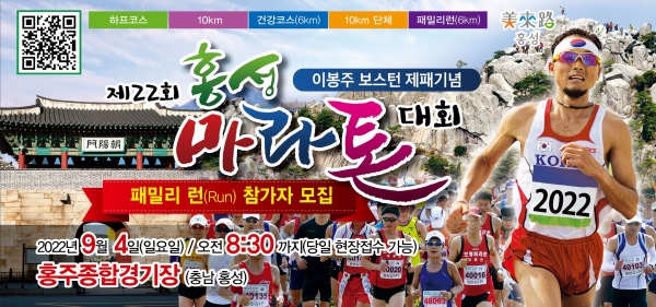 [충청뉴스큐] 이봉주 보스턴 제패기념 제22회 홍성마라톤 대회가 9월 4일 오전 9시부터 홍주종합경기장에서 개최되는 가운데, 홍성군은 성공적인 대회 개최를 위해 오는 8월 17일까지 막바지 참여자 모집에 나섰다.