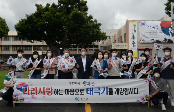 [충청뉴스큐] 홍성군은 제77주년 광복절을 맞이해 8월 8일부터 15일까지 국가상징인 태극기 선양 운동을 펼쳐, 광복절의 의미를 다시 한번 상기하고 국권 회복을 경축하고자 다각적인 홍보사업을 추진한다고 밝혔다.