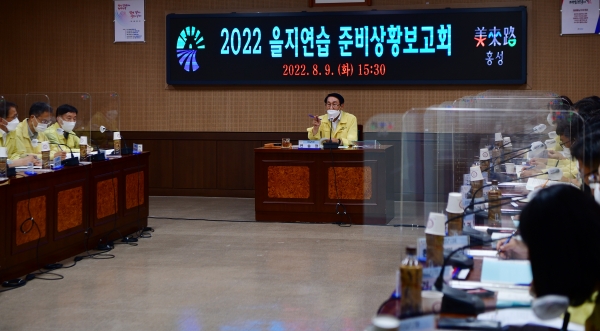 [충청뉴스큐] 홍성군은 지난 9일 이용록 홍성군수 주재로 담당관, 과장, 관계 공무원 등 30여명이 참석한 가운데, 빈틈없는 을지연습을 위한 ‘2022년도 을지연습 준비상황 보고회’를 개최했다.