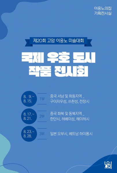 [충청뉴스큐] 홍성군 고암이응노생가기념관은 8월 9일부터 28일까지 제20회 고암 이응노 미술대회 국제 우호 도시 작품 전시회를 개최한다.
