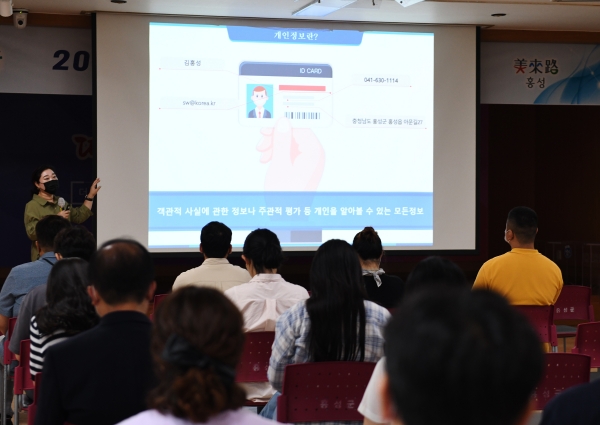 [충청뉴스큐] 홍성군은 모든 직원을 대상으로 행정업무 처리 과정에서 발생할 수 있는‘개인정보보호’ 업무와 4차산업에 능동적으로 대처하도록 앞서가는 업무추진을 위한 ‘빅데이터의 이해와 활용’교육을 지난 30일 실시했다고 밝혔다.