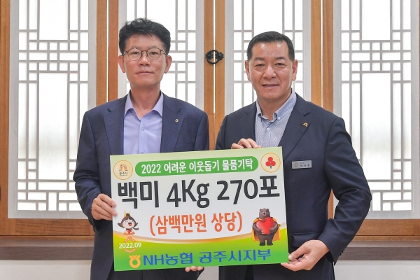 먼저, NH농협은행 공주시지부는 지난 2일 햅쌀 4kg 270포를 취약계층을 위해 기탁했으며 애터미는 4,000만원 상당의 건강보조식품 및 생필품을 전달했다.