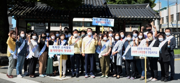 [충청뉴스큐] 홍성군은 6일 추석 명절을 맞이해 관내 소비자단체및 전통시장과 상설시장 상인회, 공무원 등 40여명이 참여한 가운데 2022년 하반기 물가안정 및 전통시장 이용 캠페인을 실시했다.
