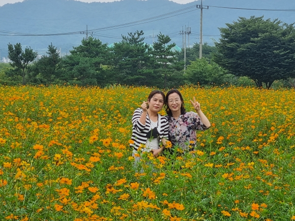 [충청뉴스큐] 증평군 농업기술센터 황화코스모스 꽃밭을 조성해 눈길을 끌고 있다.