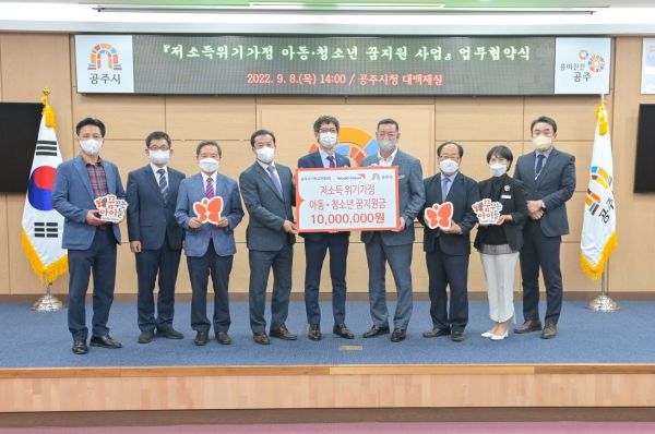 [충청뉴스큐] 공주시는 8일 월드비전 대전세종충남본부 및 공주시기독교연합회와 취약계층 아동·청소년의 꿈 지원을 위한 업무협약을 체결했다.
