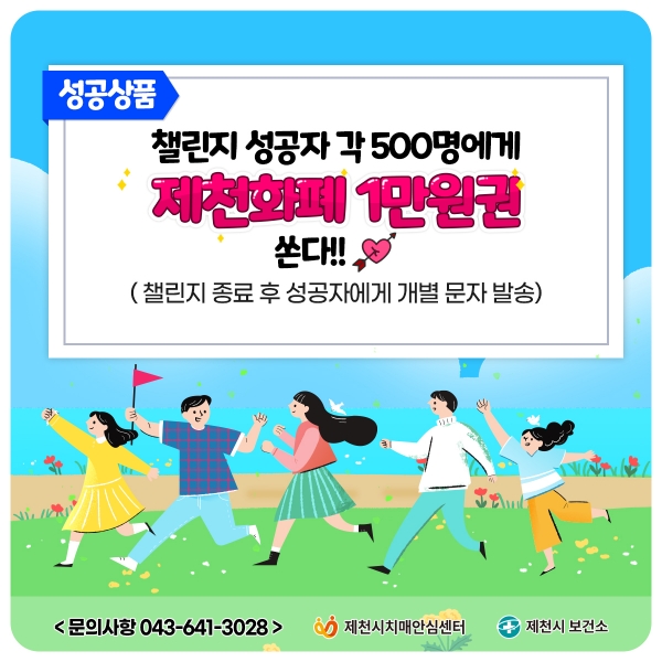 이번 행사는 모바일 걷기 앱 ‘워크온’을 설치 후, ‘제천, 어디까지 걸어봤니?’ 커뮤니티를 통해 참여할 수 있으며 개인별 챌린지에 성공한 시민 500명에게 제천화폐 1만원을 지급한다.