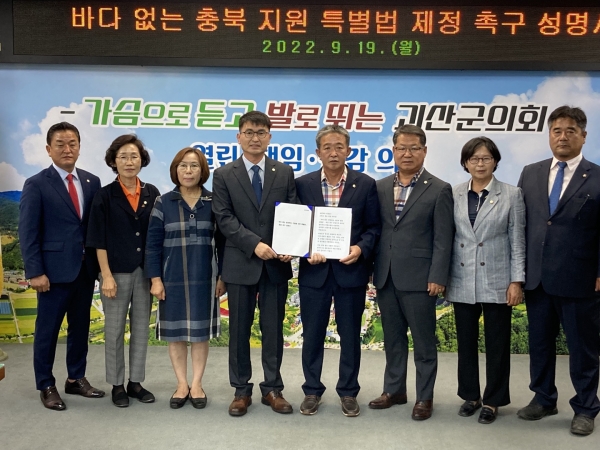 [충청뉴스큐] 충북 괴산군의회는 지난 19일 제313회 임시회 제1차 본 회의에서 ‘바다 없는 충청북도 지원에 관한 특별법’의 제정을 촉구하는 성명서를 채택했다.