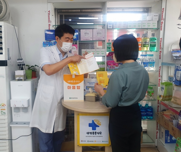 또한 ‘생명존중약국’에 자살예방 홍보문구 및 상담 전용 전화번호 ☎1577-0199가 인쇄된 친환경 봉투약케이스마스크약봉투 등 약국과 관련된 다양한 물품을 지원해 약국 이용자들에게 자살예방사업을 홍보에 앞장서고 있다.