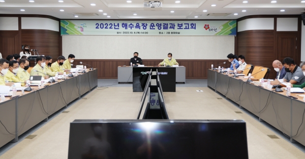 [충청뉴스큐] 태안군이 지난 6일 군청 중회의실에서 가세로 군수 등 군 관계자와 태안경찰서 태안해양경찰서 태안소방서 등 유관기관 관계자, 해수욕장 번영회 관계자 등 50여명이 참석한 가운데 ‘2022년 해수욕장 운영결과 보고회’를 개최했다.