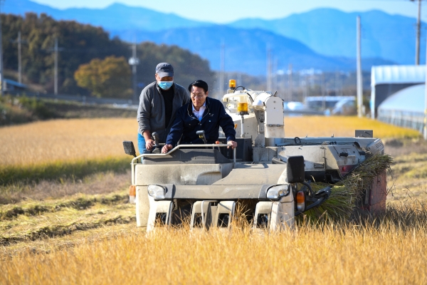 [충청뉴스큐] 이용록 홍성군수가 풍요로운 수확의 계절 가을을 맞이해 추수가 펼쳐지는 들녘을 방문해 영농철 농업인들의 노고를 위로하고 애로사항을 청취했다.