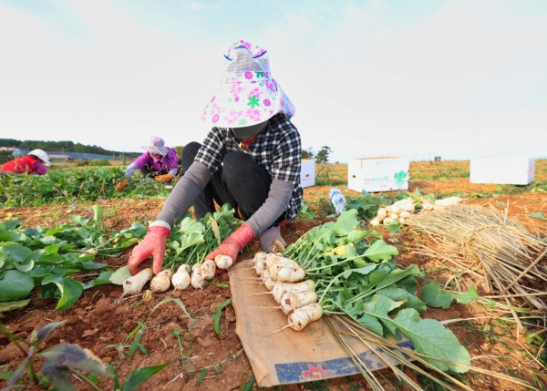 올해는 기상조건이 양호해 특유의 풍미가 풍부한 최상급 총각무가 전국의 소비자들을 찾아갈 것으로 기대되며 수확은 11월 상순까지 이어질 전망이다.