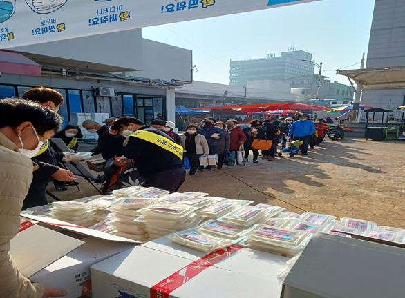 [충청뉴스큐] 홍성군과 한국떡류식품가공협회 홍성군지부는 11월 11일 농업인의 날을 맞아 홍성전통시장에서 군민들을 대상으로 우리쌀로 만든 가래떡을 나누어주는 행사를 개최했다.