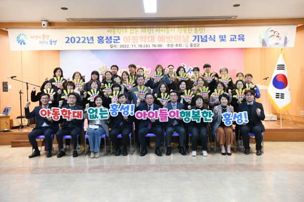 [충청뉴스큐] 홍성군이 지난 16일 홍성군청 대강당에서 아동학대 관련 종사자, 군민 등 100여명이 참석한 가운데 ‘2022년 아동학대 예방의날 기념행사’를 개최했다.