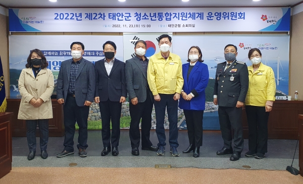 군은 지난 23일 군청 소회의실에서 유연환 위원장 등 8명이 참석한 가운데 ‘제2차 태안군 청소년통합지원체계 운영위원회’를 갖고 청소년 특별지원에 관한 사항을 심의했다.