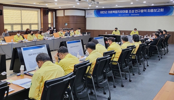 군은 지난 23일 군청 중회의실에서 가세로 태안군수를 비롯한 간부공무원과 김기두·김종인·김홍회·김기일·명제국 자문위원 등 30여명이 참석한 가운데 ‘태안군 의료복합치유마을 조성 연구용역 최종보고회’를 갖고 보건의료원 신축방안을 설명했다.